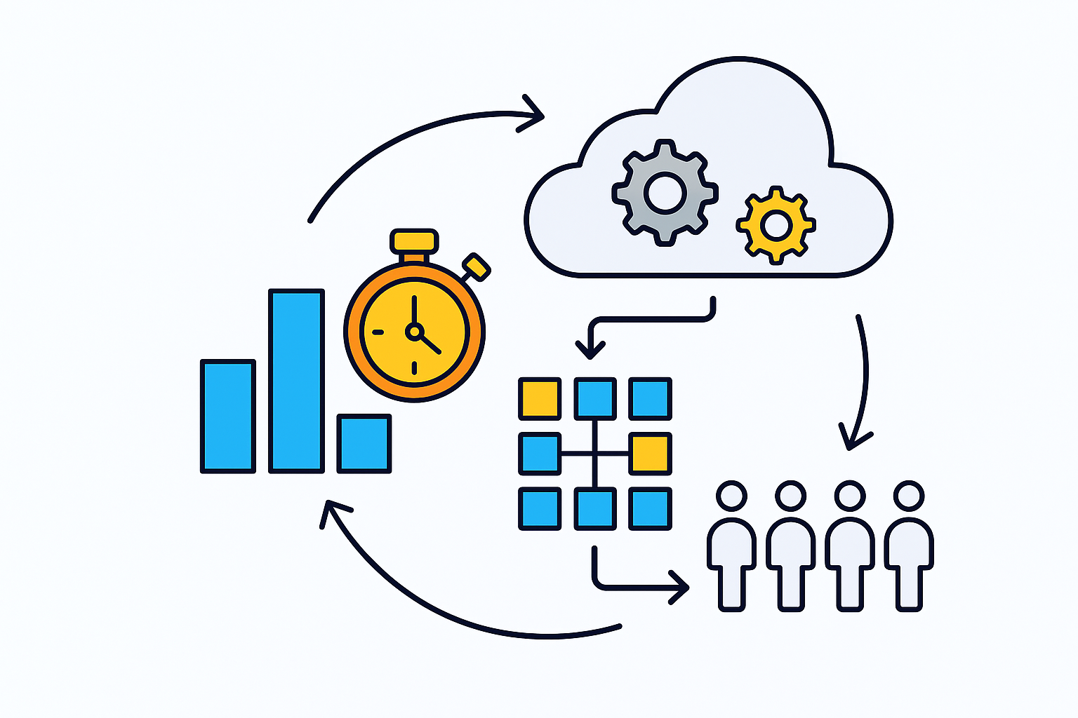 Reusable patterns, shared abstractions, and standardised ways of handling common workflows remove a large amount of repeated implementation. When teams no longer reinvent the same solutions, cycle time drops.